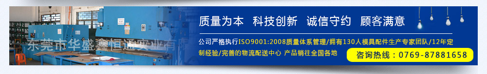 東莞市華盛鑫恒通實業(yè)有限公司成立于2003年08月,總占地面積6200㎡,現(xiàn)有員工130人(其中本科以上技術研發(fā)人員8人),是一家致力于各種行業(yè)清洗架、鋼化架、模組頂針測試治具的專業(yè)非標夾、治具設計制造商。公司擁有CNC加工中心(北京精雕)、沖床、剪板機、折彎機、線切割機、氬弧焊機、點焊機、碰焊機、車床、銑床、磨床、鉆床、攻牙機、超聲波清洗機等不同種類不同規(guī)格、10T-200T等各類加工設備90臺。公司嚴格執(zhí)行ISO9001:2008質量體系管理,品質檢測儀器分別有:現(xiàn)代化高端檢查設備投影儀(2.5次元檢測儀)、測硬器、鹽霧測試機若干。等經(jīng)過長期的摸索,擁有一批高素質的生產(chǎn)隊伍及專業(yè)的工程技術人員,設計各種配套設施。 |